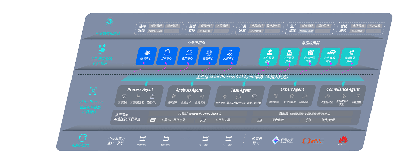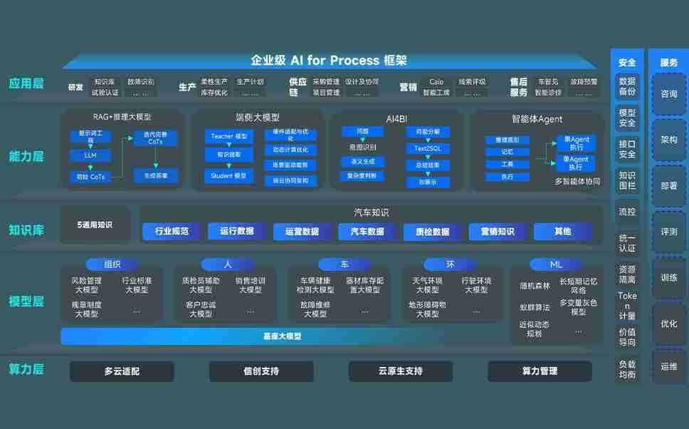 端到端的一站式AI工作空间深度融合了从企业战略规划到日常经营的全流程业务板块,,,,定向解决车企内部领域多、、、、部门多、、、链条长、、、、场景碎片化等难题,,,支持车企快速构建以AI为核心的生产力写作体系,,,实现任务执行与AI能力的无缝集成与交互